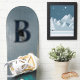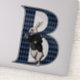 Monogram / letter / initial "B" in a vintage black and blue harlequin diamond patter with added vintage illustration of the White Rabbit from the beloved children's book Alice in Wonderland. Fun large vinyl sticker for laptops, electronics and any other surfaces that is appropriate for transparent stickers and labels (even mirrors!)