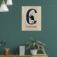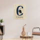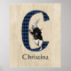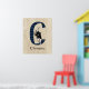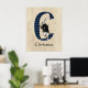 Whimsical design for Alice in Wonderland lovers of all ages features capital letter / initial C with black and blue harlequin fill and original White Rabbit illustration that has been tinted, on a faux wood panel background. Personalise with name or other message