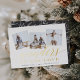 Elegant religious holiday photo card features three square photos in a collage layout, with "wonders of his love" overlaid in luxe gold foil script and block lettering. Personalise with your name(s) and the year beneath. Cards reverse to a botanical patterned background. A modern and minimalist choice for your Christmas 2022 greetings.
