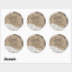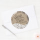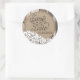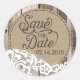 Aged wood and lace over linen-look background rustic country save the date label design.