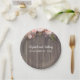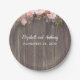 Wood and Pink Flowers Rustic Wedding Paper Plate