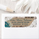 Aged wood planks with white lace and baby's breath and teal and navy hydrangea flowers rustic country western wedding address labels.