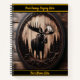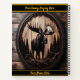 A beautifully crafted wooden artwork features a moose surrounded by trees, capturing the essence of wilderness in intricate detail.