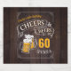 Stylish cheers and beers to 60 years typography design on brown wood grain background, custom it with your own text, fun and unique, great for any age adult birthday party for men, or anniversary party for any occasion.