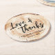 Add a unique touch to your wedding favours with our Wood Cutting Heart Wood Love and Thanks Wedding Round Paper Coasters. These coasters offer a delightful surprise for your guests, breaking away from the typical thank-you giveaways.