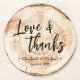 Make a lasting impression on your guests with our Wood Cutting Heart Wood Love and Thanks Wedding Round Paper Coasters. Surprise and delight them with this rustic-inspired favour that celebrates your love and gratitude.