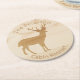 Rustic nature cabin theme pulp board paper coasters, with graphics of a raw pine background with a tan stag silhouette. Personalise the tan coloured arched text to suit your needs. Great for anytime use and makes a nice gift idea.