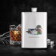 The product is a good size and came exactly as it was pictured. The lid is not attached to the flask, which could be dangerous on drunken nights... The print came out surprisingly well and looks very sharp. Would definitely recommend.