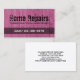 Wooden planks with a rough unfinished natural texture form the background of this simple maroon hued design that's suitable for a myriad of businesses or industries. Your business name or type of business and short description of your business will appear in a grungy type on the wood itself, lending a graffitti-type look that's great for construction or home-repair businesses. Your name and contact will appear in bold white letters over a semi translucent black strip that shoots across the lower middle of the business card.
