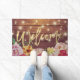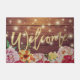 Modern Makeup Artist Beauty Salon Personalised Doormat Template - Elegant Floral, Gold Script and Modern Chic String Lights on Natural Rustic Wood. Perfect for a graphic designer, artist, web designer, florist, hair stylist, makeup artist, wedding and event planners, interior designer, bloggers, consultants, boutique owners, fashionistas or anyone in a creative profession.