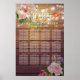 12+ Tables Wedding Seating Chart Poster Templates - Elegant Script with Pink White Roses Floral and String Lights on Rustic Wood Background.