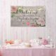 Wedding Shower Celebration Welcome Sign Banner Templates - Vintage Watercolor Floral and Elegant String Lights on Rustic Wood Texture Background.