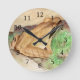 A watercolor of a lovely little brown wood frog adorns this clock!