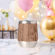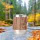 Showcase your brand in style with this customizable thermal wine tumbler featuring your business logo, website, and QR code on a rustic wood grain background. A practical and professional choice for company events, client gifts, or team swag with a rustic touch.