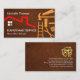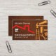 Overleaf, the same wood grain theme is used with the contact details on the right side of the card. At the top is a gold home handyman tools logo you can use followed by your prestigious name, the contact details and a slogan option to publicise your services.
