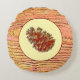 wood imitation and pinecone round cushion
