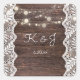 Wood Jean Lace & String Lights Monogram Square Sticker