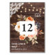 Wood Lace, String Lights, Blush & Peach Floral 3 Table Number