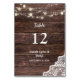 Dress up your wedding or party tables with this chic wood, lace, string lights Table Number Card.