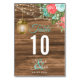 Wood, Lantern with Teal & Coral Floral Table Number