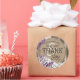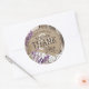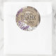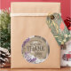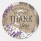 Aged wood planks, lavender, and lace over linen-look background rustic country wedding label design.