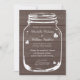 Brown and white country chic glass mason jar wedding invitations. Rustic wood grain panel design with vintage weathered white hearts / love symbols. Elegant script typography for name of bride and groom. Cute wedding set for summer outdoor garden barn marriage in june, july, august, september etc. Customisable text and luxury paper quality. Trendy DIY theme. Custom background colour. Pretty faded grunge style graphics.