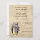 A classic wedding invitation with beautiful cottage english garden flowers in shades of purple and blue lavender in a mason jar. The invitation features easy to read classic fonts and a custom design, making it a timeless choice for any couple. The invitation is printed on high-quality cardstock.