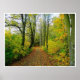wood path through the trees poster FROM 8.99. This beautiful photograph of a path through the forest or woods was taken in Czech Republic in autumn. The majestic trees and their fall colours are natures own work of art for your walls at home at the trail leads the viewer into the heart of the woodland image.