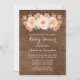 Wood Peach Watercolor Floral Baby Shower Invitation