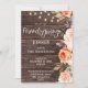 Send your guests a beautiful Thanksgiving invitations with your Wood, Pink and Peach florals with String Lights Friendsgiving Thanksgiving Invitation.