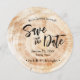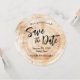 Introducing our distinctive "Rustic Wood Wedding Save the Date with Website Invitation"! If you're looking for something truly unique and want to break away from the traditional engagement couples picture, we have the perfect solution for you. This round card design is inspired by the natural beauty of wood disc slabs often found at rustic or botanical themed weddings.