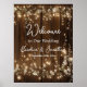 Wood Rustic White Floral String Lights Wedding Welcome Sign - This elegant brown wood and white Welcome sign featuring lovely string lights and white floral can be personalised with your Wedding information. (the product is not actually made from wood)
