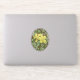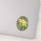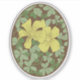 This oval shaped sticker features an illustration of wood sorrel leaves and blossoms. Two shades of green for the leaves is complemented by brown linework. A woodblock style gives this artwork a handmade and unique quality. This sticker is perfect when you would like to bring a touch of rustic nature to your home. Available in violet or yellow flowers. From the original artwork of Carolyn A Pappas.