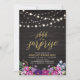 Celebrate a special day with this rustic floral surprise birthday invitation. This design features stylish lettering "shhh It's a surprise" with string lights and a flower bouquet on a wood texture background. You can customise the text to any age or event( 30th, 40th, 50th, 60th, 70th Birthday, etc). More matching invitations and party supplies are available at my shop BaraBomDesign.