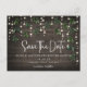 Wood String Lights Script Wedding Save the Date Postcard