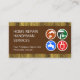 Overleaf, in a white cover, card details are over on the left with a home logo you can use, placed at the top. This is followed by your prestigious name, the contact details and a slogan option to publicise your services.