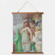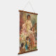 The polyester fabric displayed many wrinkles and several sharp creases throughout. At the bottom of the tapestry, I noticed a bulge in the fabric because it was not pulled tight enough before being connected to the wooden boards. It took me over an hour to spay water on the tapestry before putting it on an ironing board where I used a warm iron over a polyester cloth to remove the wrinkles and creases in the material. I was able to get out the wrinkles and creases that made that tapestry look as beautiful as its picture.