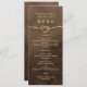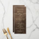 Simple, elegant, rustic wood wedding menu with romantic faux gold rope heart and modern calligraphy script.