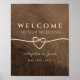Simple, elegant, modern, rustic wooden wedding welcome poster with gold rope heart and trendy calligraphy script.