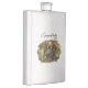 The product is a good size and came exactly as it was pictured.  The lid is not attached to the flask, which could be dangerous on drunken nights... The print came out surprisingly well and looks very sharp.  Would definitely recommend.