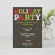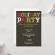 Announce your big holiday bash with this jolly party invitation. Big bold type in colourful woodcut style typeface is fun and unexpected. Your party information is set in complimentary font against a dark background peppered with little snowflakes. Your guests will be buzzing with excitement when they receive these chic holiday party invitations.