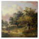 Wooded Landscape with Woman and Child Walking Down Tile