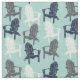 This fabric features illustrations of wooden Adirondack chairs in charcoal grey, navy blue and eggshell white set against a light aqua blue coloured background. The pattern is perfect for crafting projects with a outdoors or summer feel.