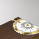 Brown wooden background with sea, mechanical ridge, an antique steering wheel, golden anchor and various gold and brass gears. Steampunk style.