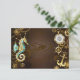 Brown wooden background with sea, mechanical ridge, an antique steering wheel, golden anchor and various gold and brass gears. Steampunk style.