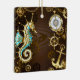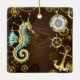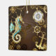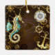 Wooden Background with Mechanical Seahorse Ceramic Ornament