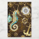 Brown wooden background with sea, mechanical ridge, an antique steering wheel, golden anchor and various gold and brass gears. Steampunk style.