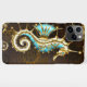 Brown wooden background with sea, mechanical ridge, an antique steering wheel, golden anchor and various gold and brass gears. Steampunk style.