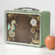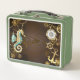 Wooden Background with Mechanical Seahorse Metal Lunch Box