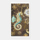 Brown wooden background with sea, mechanical ridge, an antique steering wheel, golden anchor and various gold and brass gears. Steampunk style.